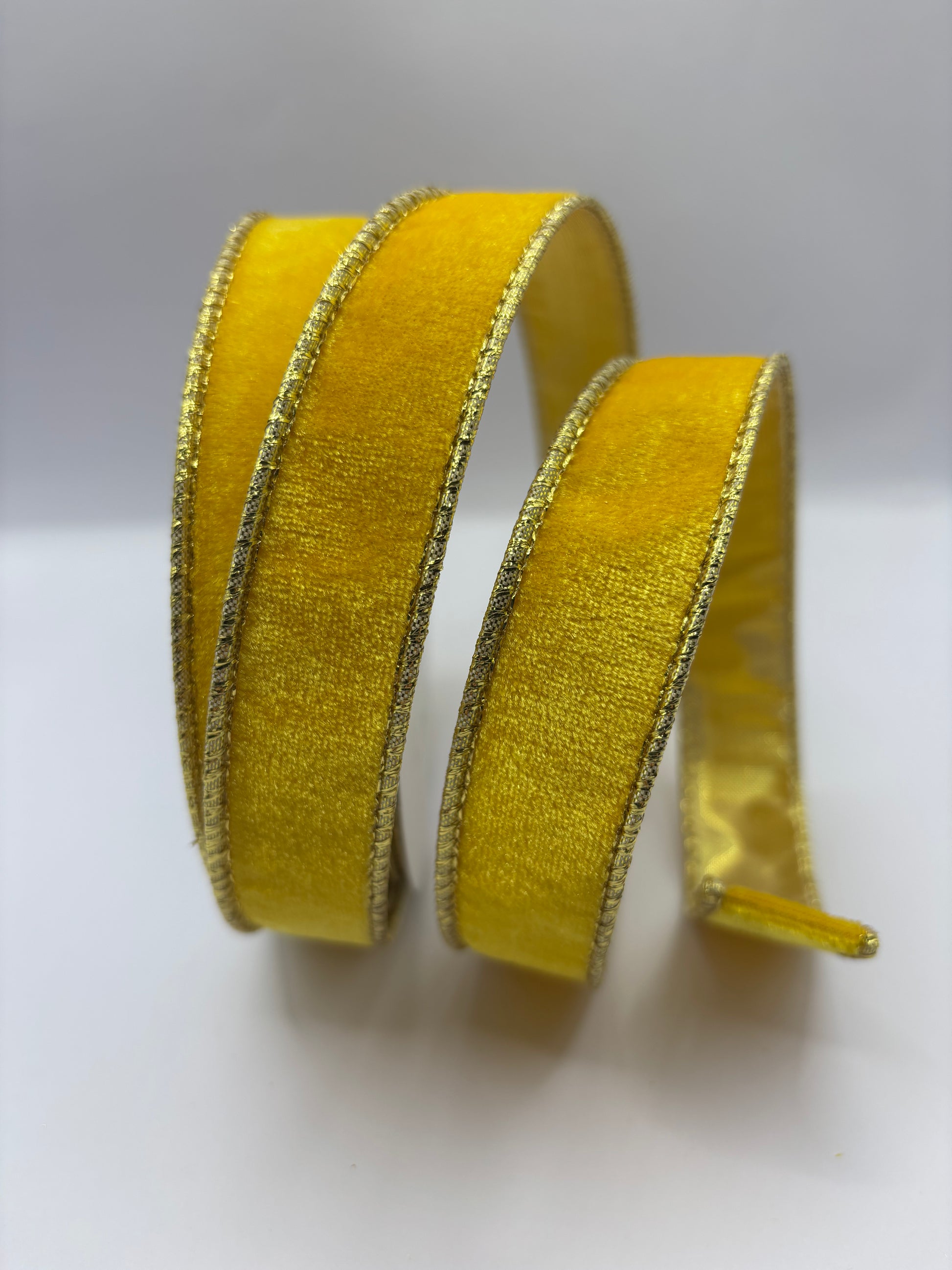 1” (25mm) Yellow/Gold Velvet - Gold Backed Wired Christmas Ribbon